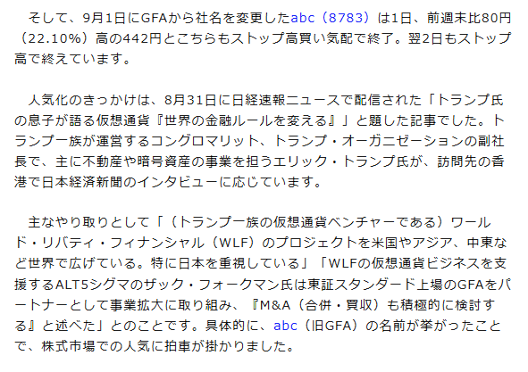 abc 株価上昇エリックトランプ「abc社長?知らん」