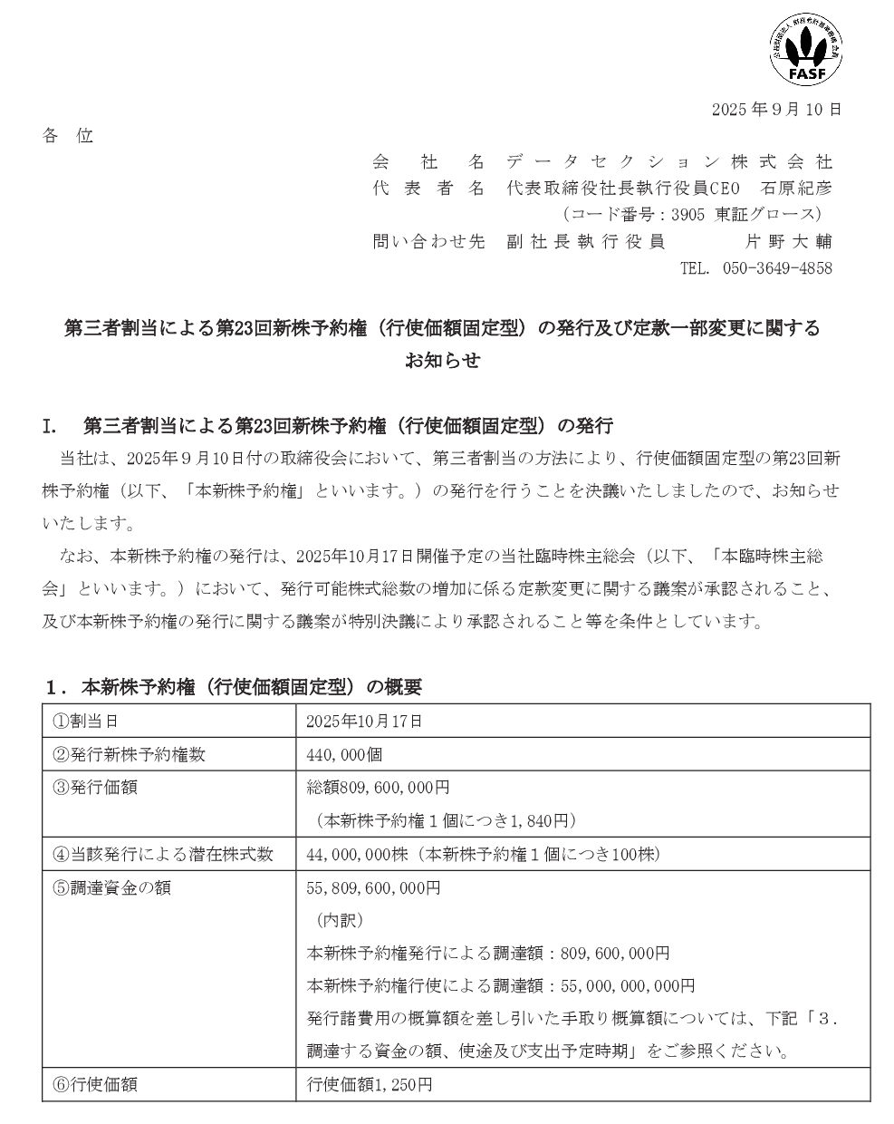 多分デーセク決議は通っちゃうんだろうけど、この希薄化/ディスカウント率で企業価値が向上するなら、わざわざこんなスキーム使わなくても普通に公募増資で調達できるはずなので、算定機関のプライシングは計算行為としては正しくても反市場的だし、東証は養分だと思われておりその認識は正しい