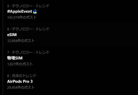 1: 2025/09/10(水) 10:11:51.83 iPhone 17、日本版はSIMカードがささりません eSIMオンリーにSNSは「移行が不安」とざわつきも – ITmedia NEWS https://www.itmedia.co.jp/news/articles/2509/10/news088.html 2025年09月10日 06時06分 公開 [ITmedia] 米Appleが9月9日(日本時間)に発表した薄型の「iPhone Air」や、新型「iPhone 17」シリーズの日本語版は、米国版と同様に全モデルでSIMスロットを搭載せず、遠隔で契約情報を書き込める「eSIM」のデュアル構成を採用した。(中略) 10日未明のXのトレンド ITmedia NEWS編集部は今後、国内キャリア各社などに対し同様のケースについて取材。追って追記・記事化する。 ※全文はソースで。 ※関連スレ 「iPhone 17」シリーズ発表、9月19日発売へ。新たに薄型の「iPhone Air」が仲間入り ★2 [どどん★] https://asahi.5ch.net/test/read.cgi/newsplus/1757462180/ 続きを読む Source: 投資ちゃんねる – 株・FX・仮想通貨・投資2chまとめ 投稿ナビゲーション 【速報】伊東市長 市議会解散 【朗報】炊飯器、ガチで高ければ高い方がいい