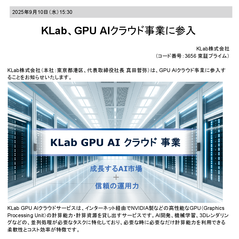 KLab、GPU AIクラウド事業に参入 pic.twitter.com/nZZQ2zoY14