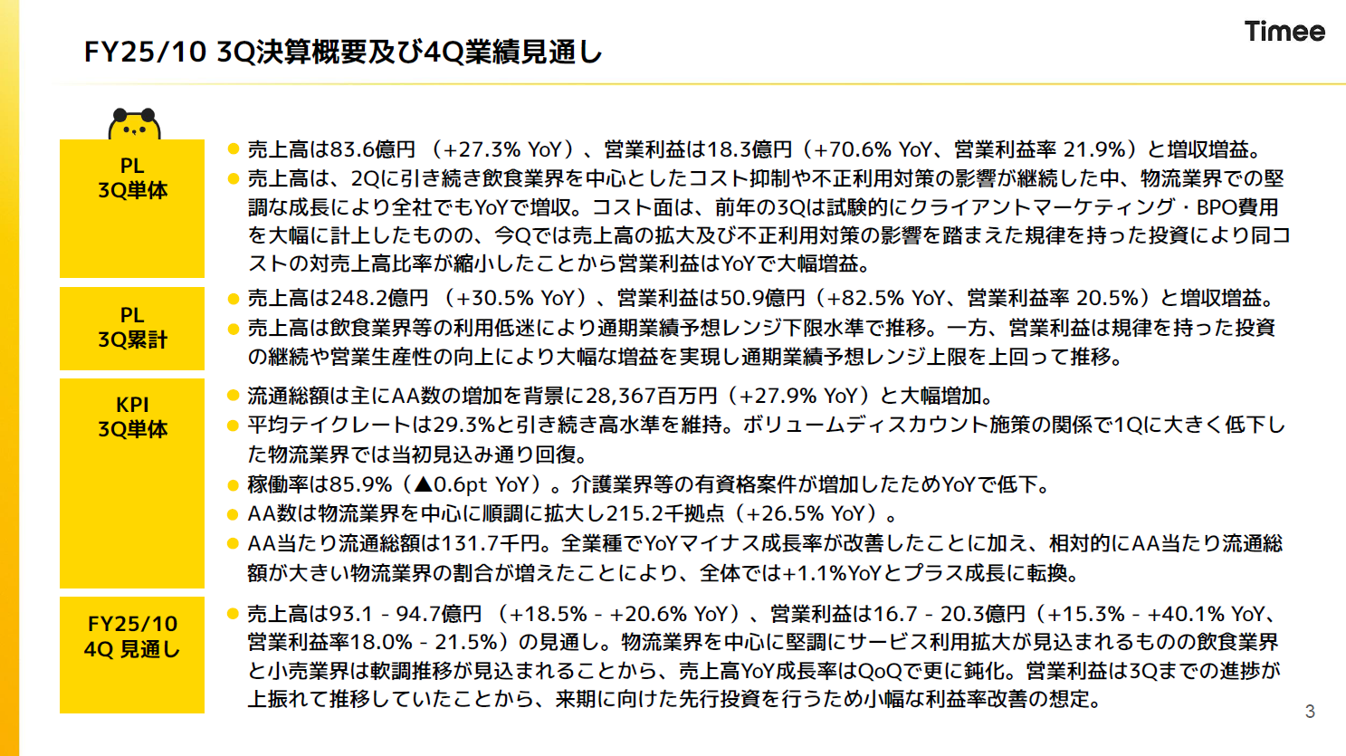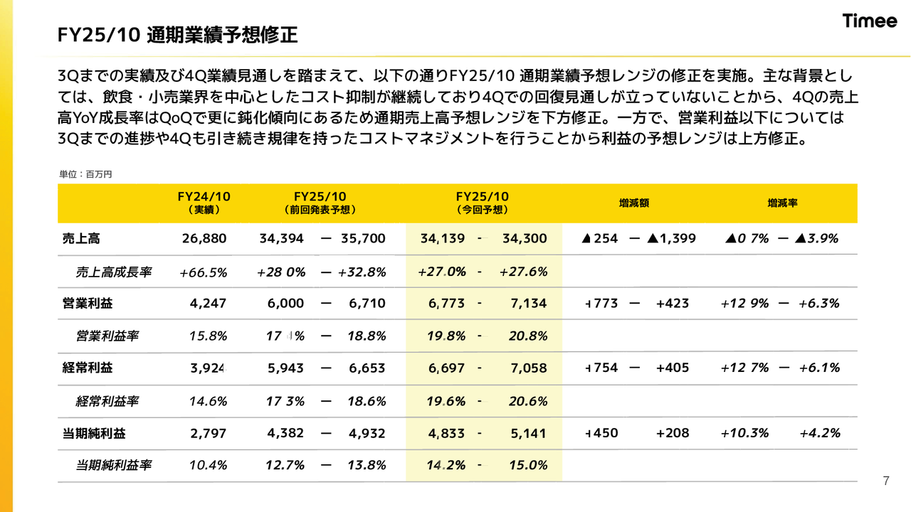 タイミー、利益は上方も飲食(と小売の大手グループ)中心にしんどそうで売上下方か。