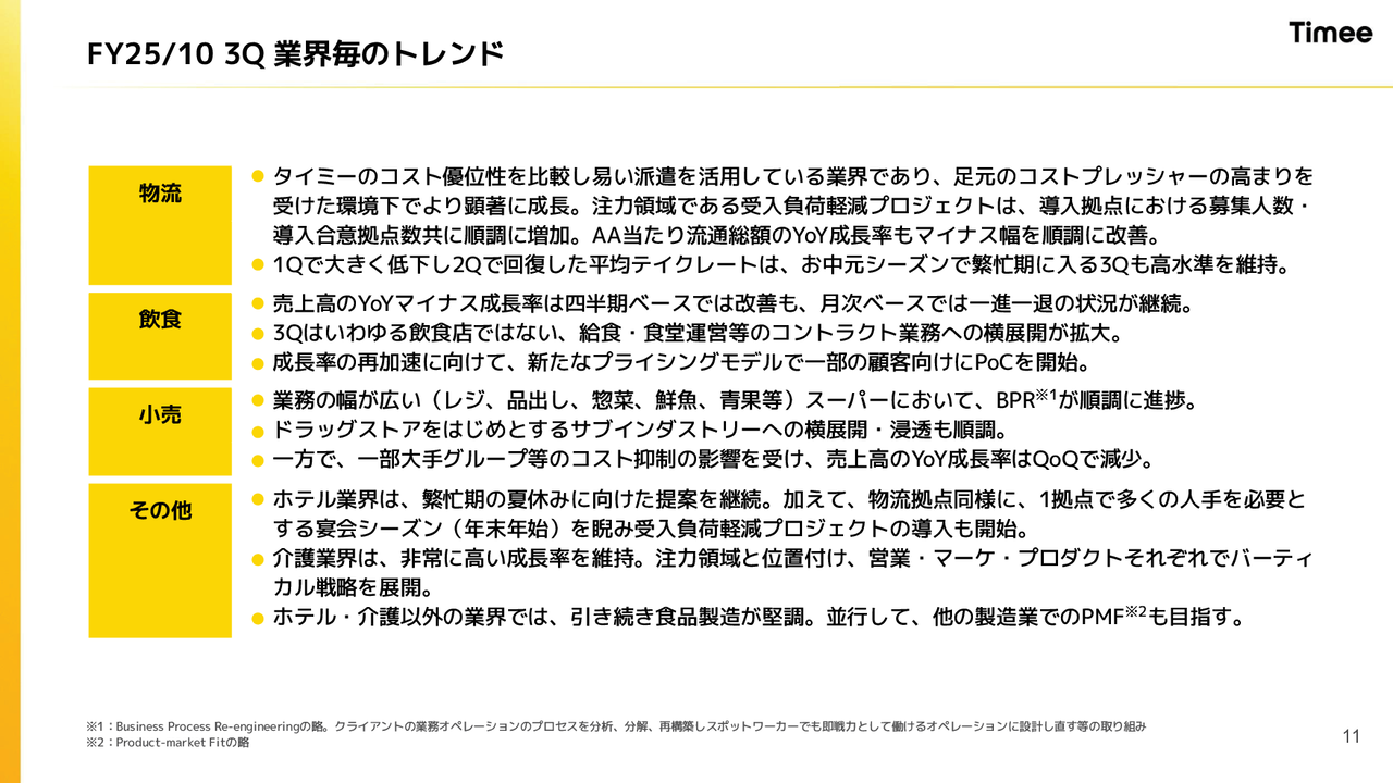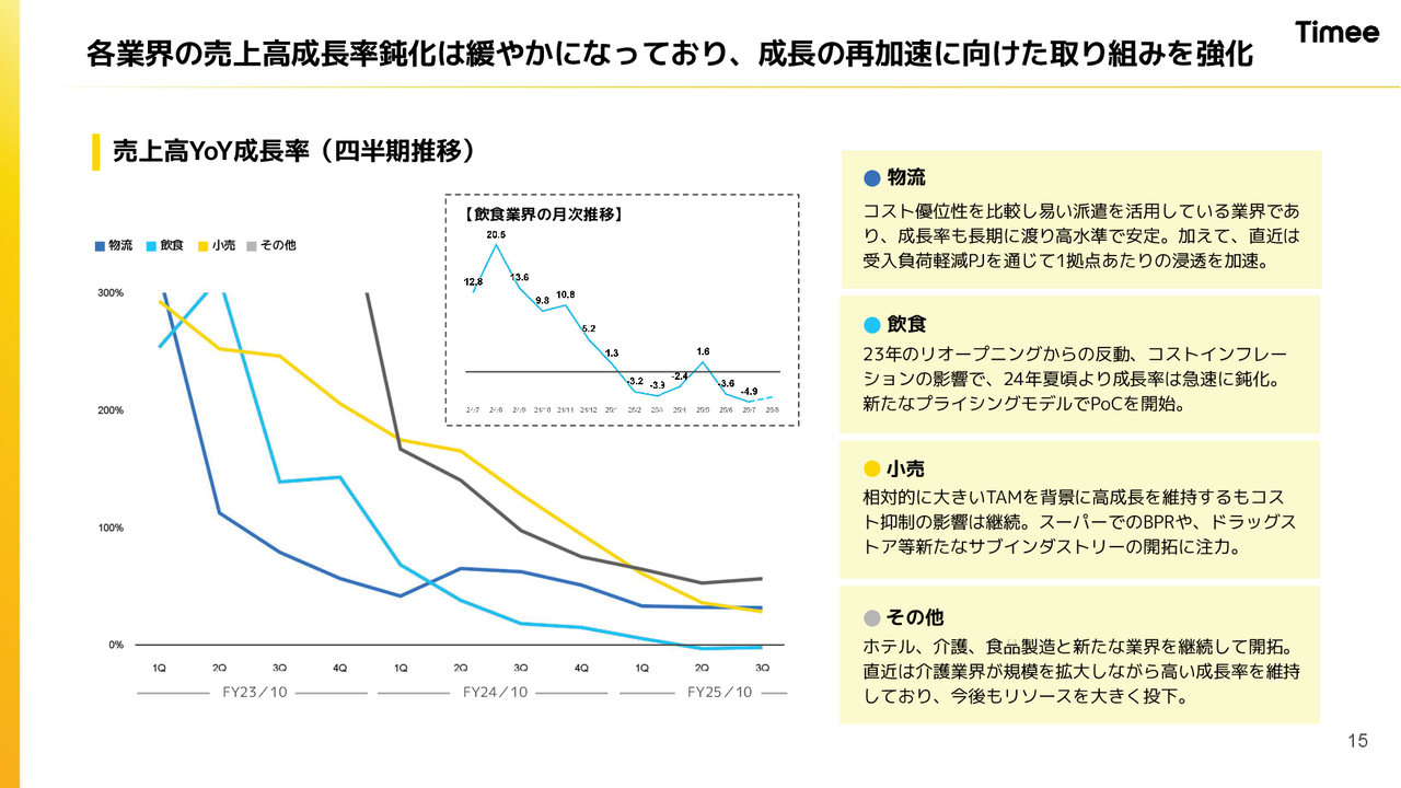 「物流業界を中心に堅調にサービス利用拡大が見込まれるものの飲食業界と小売業界は軟調推移が見込まれることから、売上高YoY成長率はQoQで更に鈍化」