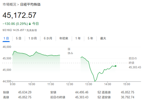 1: 稼げる名無しさん :2025/09/19(金) 13:53:58.88 ID:lVpm4Uly9 https://www3.nhk.or.jp/news/html/20250919/k10014927001000.html 1個前の相場記事はこちら:【相場】日銀は金利据え置き 2人が利上げに投票 ETF処分に関する決定も同時発表で日経平均が一瞬売られる 15時30分より、植田日銀総裁定例記者会見:https://www.youtube.com/watch?v=1_mWeIhFP14 1001: 以下名無しさんに代わりまして管理人がお伝えします 1848/01/24(?)00:00:00 ID:money_soku ETF・REITの売却発表(少しずつではあるけれど)で市場に動揺だお。 その影響でドル円も少し引っ張られており一時147円台前半。 ただ引けに近づくにつれて、徐々に落ち着きを取り戻しているお。 document.getElementById(‘kznott2frame’).onload = function() { try { const contentHeight = this.contentWindow.document.body.scrollHeight; this.height = contentHeight; } catch (e) { console.error(“error”); } }; 続きを読む Source: 稼げるまとめ速報 投稿ナビゲーション 発表時間を固定しない植田日銀、過去3年で3番目に遅い金融政策発表からのETF売却サプライズで日本市場を錯乱させる 郵政民営化って何も悪いとこなくね?