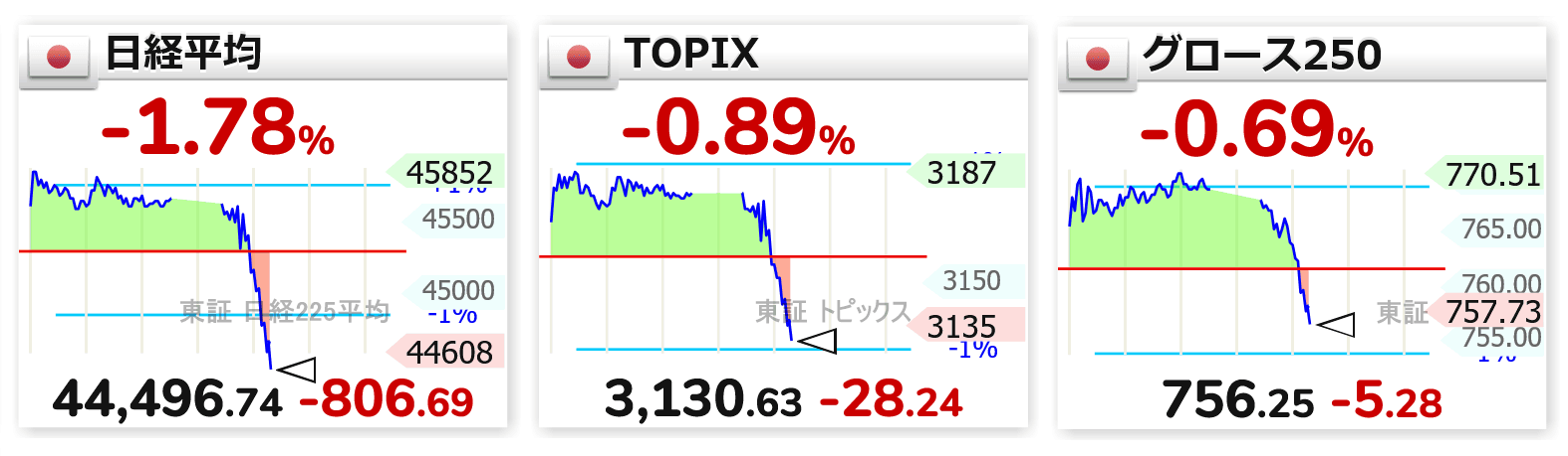 ※日経平均、場中の高値から一時4桁マイナス