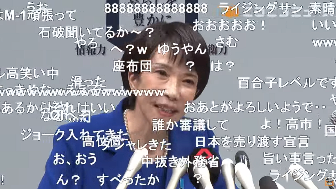 ニコ生で高市さんの演説見てたけど、その一言の直前まで良い感じだったのに「高市、日本を高い位置に」って言った瞬間に「???」の弾幕コメント一斉に流れたのめちゃくちゃ笑ったwwwwwwwww