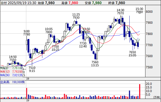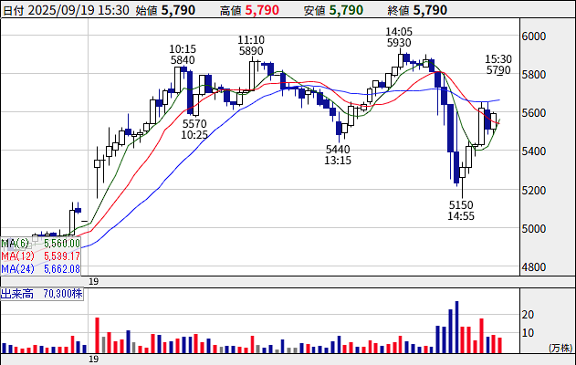 ・サイバーセキュリティ屋のFFRIセキュリティ(日中5分足チャート)