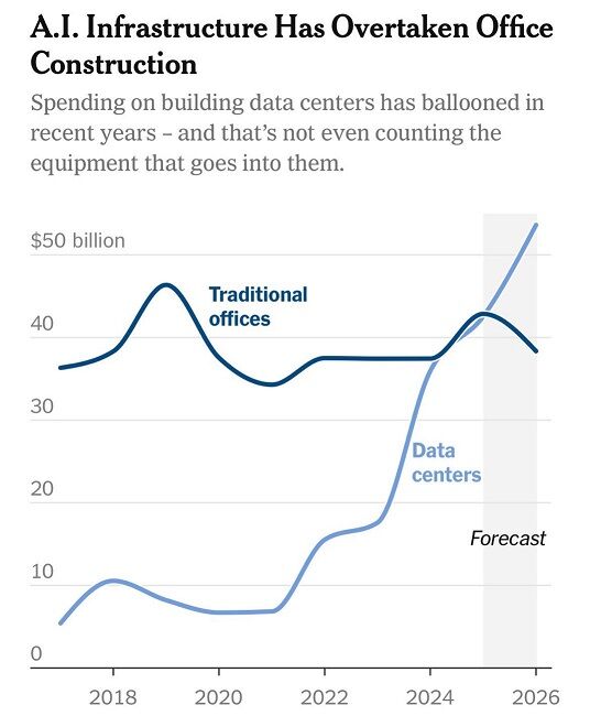 パソコンの前で働くオフィス職はそう遠くない将来に別の収入源を探さざるを得なくなる可能性がある。企業は「人のためのオフィス」ではなく「AIのためのデータセンター」に巨額資金を投じている。職場の中心となるオフィスは縮小し主役の座はAIへと移りつつある。この厳しい現実はすでに始まっている。