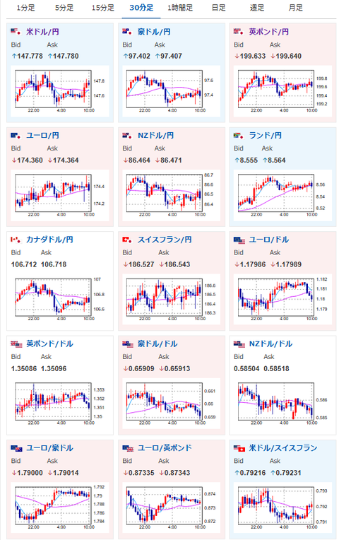 1: 以下名無しさんに代わりまして管理人がお伝えします 1848/01/24(?)00:00:00 ID:money_soku 2025年09月24日10時34分取得: やる夫今日のポイント:・米PMIが予想より弱い数字で株売り反応も目立った材料は出ておらず・金は引き続き強いがやや調整気味か 今日の予想:・ユーロ円が強く、金が調整で仮想通貨下落も停止気味・材料不足で調整中、金やユーロを追いかけたいがエントリーポイントに悩み様子見中 本日のスケジュール(特に重要なイベントは赤字で表示):前回発言は、直近であれば大きくスタンスが変更される可能性は低いため影響度低久しぶりの発言、スタンスの変化、中央銀行への影響力などがある場合、相場への影響大 自民党総裁選候補者が日本記者クラブで討論会(13:00~15:00) 10:30 豪)8月豪消費者物価指数(CPI、予想:前年同月比2.9%) 17:00 独)9月独Ifo企業景況感指数(予想:89.4) 20:00 米)MBA住宅ローン申請指数 23:00 米)8月米新築住宅販売件数(予想:前月比▲0.3%/65.0万件) 23:30 米)EIA週間在庫統計 25:30 英)グリーン英中銀金融政策委員会(MPC)委員、講演前回発言(6月時点):高インフレ持続を懸念 利下げ再開急がず 26:00 米)米財務省、5年債入札 29:10 米)デイリー米サンフランシスコ連銀総裁、あいさつ(投票権なし)前回発言(8月時点):政策を再度調整する時期が間もなく訪れる 南アフリカ(伝統文化継承の日)、休場 国連総会一般討論演説(ニューヨーク、29日まで) 1001: 以下名無しさんに代わりまして管理人がお伝えします 1848/01/24(?)00:00:00 ID:money_soku おはようございますお。 昨日のパウエル氏発言は定例記者会見とほぼ同じ内容で、特に大きな材料にはなっておらず。 経済指標発表を受けた調整気味な動きが続いており、今のところ材料不足だな~と思っているお。 入るのであれば金やユーロ買いだとは思うのだけれど、明確に動きそうな材料はなし。 損切り浅めで入るか、それとも様子見かで悩んでいるところだお。 document.getElementById(‘kznott2frame’).onload = function() { try { const contentHeight = this.contentWindow.document.body.scrollHeight; this.height = contentHeight; } catch (e) { console.error(“error”); } }; 続きを読む Source: 稼げるまとめ速報 投稿ナビゲーション すまん、実家住みが一番コスパ良くないか? 個人的なことをやたら開示してくる職場が嫌なんだが