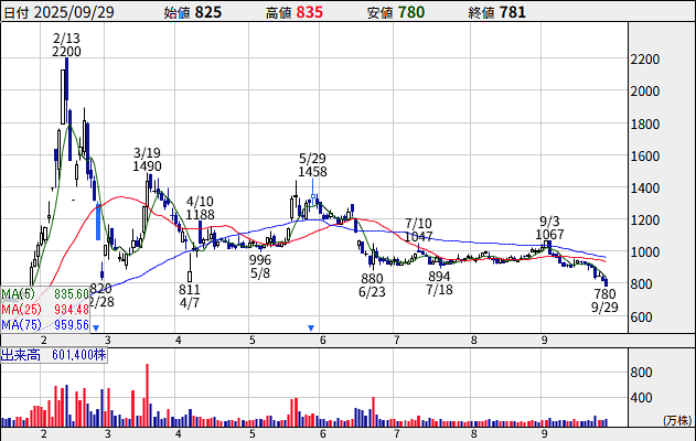 ※2025年2月の上場来高値から半額シールが貼られも時価総額460億円