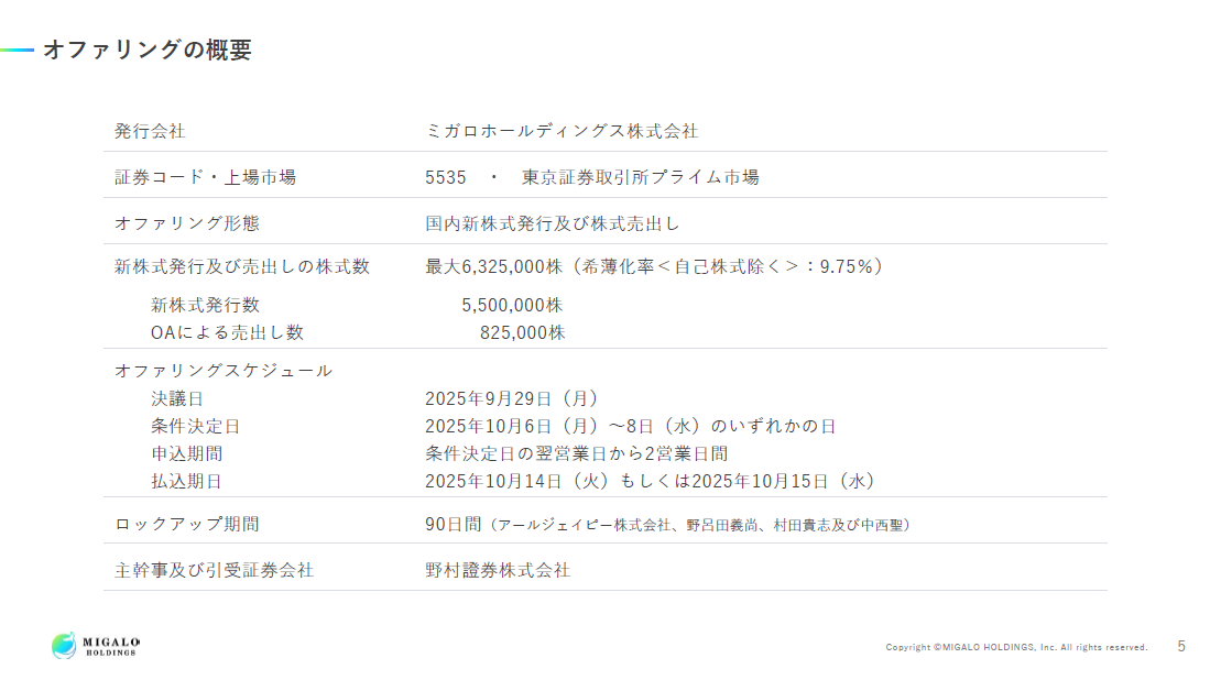 ミガロ、公募増資、550万株、OA82.5万株、主幹事野村、DX推進事業とDX不動産事業に充当