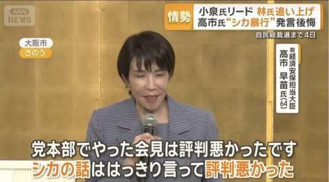 しかし、ハト派、タカ派ときて新たにシカ派 自民は多様で何より 後に続くのはなんなんやろね。 — shin (@shin64970466) September 24, 2025 https://www.youtube.com/ 自民党へずま派の高市氏 — gelsy (@gelsy) October 4, 2025 党員票でも小泉進次郎氏が圧勝すると予測するテレ朝「報道ステーション」 pic.twitter.com/ejdmxxR05I — Tokyo.Tweet (@tweet_tokyo_web) October 3, 2025 国民舐めプステーションですな — 真鯛ヒラメ (@Madai_Hirame) October 4, 2025 もしこれで高市さんが党員票ダントツトップだったらマスコミはなんて言うのかな? — 叢雲 (@akinomurakumo) October 4, 2025 劣勢のようだが次は高市が良いなあ。何かもう日本は高市首相を消化しないと一歩も前に進めない気がするよ。QQEをやってようやく金融政策幻想が消えたのと同じで経験しないと分からない。 — シラカワスキー (@shirakawa_love) October 3, 2025 自民党総裁選、高市早苗が28都道府県で党員票トップ pic.twitter.com/ARkhPaOdk8 — Mi2 (@mi2_yes) October 4, 2025 党員票で引っくり返せないぐらい差をつけるしか勝ち筋のない高市さんにとっては今のところ理想通りの流れ — アナゴ(無料版) (@perfect_anagooo) October 4, 2025 この情勢だと決選投票がほぼ確実で構図は高市早苗VS小泉進次郎。 — Koki Ito 高麗大学・政治外交学科 (@_imyour_koki) October 4, 2025 まじでメディアは統計に基づかない情報を垂れ流すのは重大な悪事だと認識すべきである・・・ — 機械系のコーギー提督bot (@flltby2) October 4, 2025 林芳正が追い上げてる報道は何だったのか。オールドメディアは今回もまた押し負ける展開。世論を誘導する力を失った第四の権力、年貢の納めどきやぞ — 珪素生物 (@deadcatbouncepn) October 4, 2025 思ったより高市さんが圧勝してるこれ議員票で小泉氏にひっくり返ったら物議をかもしそうな気がする — TING (@Ting2012) October 4, 2025 自民党議員からしたら選挙の時の票田の自民党員票がこうなってる状況は無視できんだろうな。ただでさえ衆参ボロ負けしてるわけだし。 — polaris (@Polaris_sky) October 4, 2025 これで進次郎勝ったらいよいよやばいな — 世界の北野 (@SINTARO_1919) October 4, 2025 「党員票こそが大事である」という思想なら総裁選のルールがそうなっているべきで、そうなっていない時点で議員票でひっくり返ることも受け入れないといけないのは当然の話では? — るかるる🦀 (@rukaruru) October 4, 2025 党員の声を無視すれば云々結局はカス扇動の火消しをするよりそっちに乗って迷惑系政党になるってことなんだよな — 兵部省の小役人 (@badoukoukoku) October 4, 2025 「自民党を立て直す」、「党内の一致結束」って言ってるやつの陣営が党内の対抗候補をビジネスエセ保守呼ばわりしてたの決定的だと思うんだけどな(なおあれは高市さんのことではないというのが公式見解なのでこの投稿はSNSの誤情報として規制される模様 — ののわ (@nonowa_keizai) September 26, 2025 Source: 市況かぶ全力2階建 投稿ナビゲーション Amazonで時計を買うとなんか儲かるwwwwwwwwww 【Live映像あり】自民党総裁選開票中