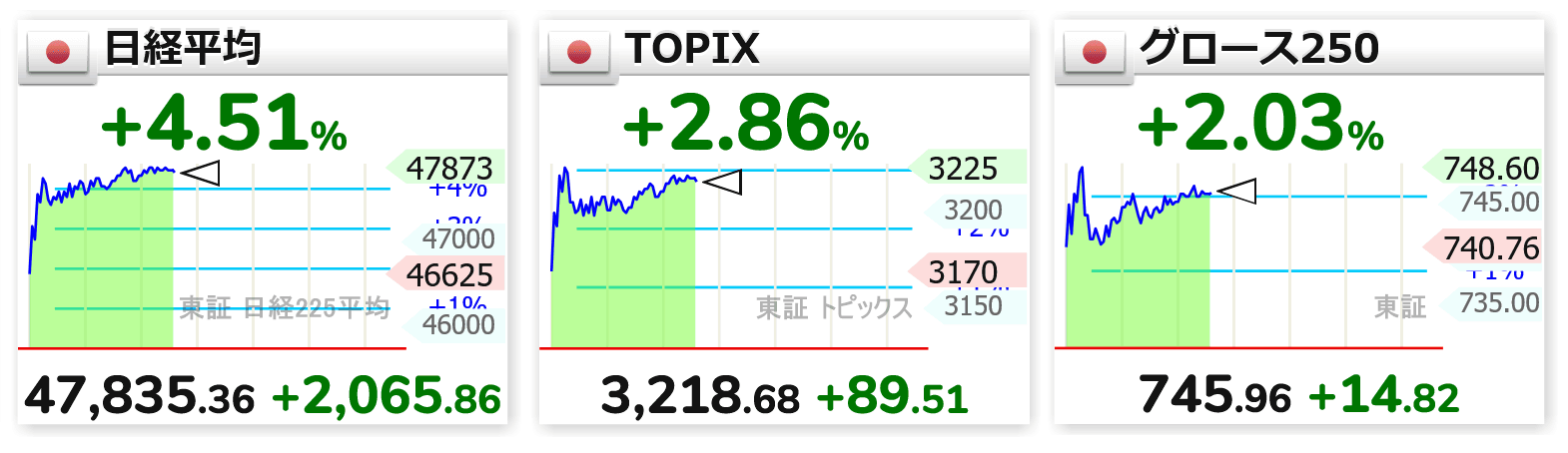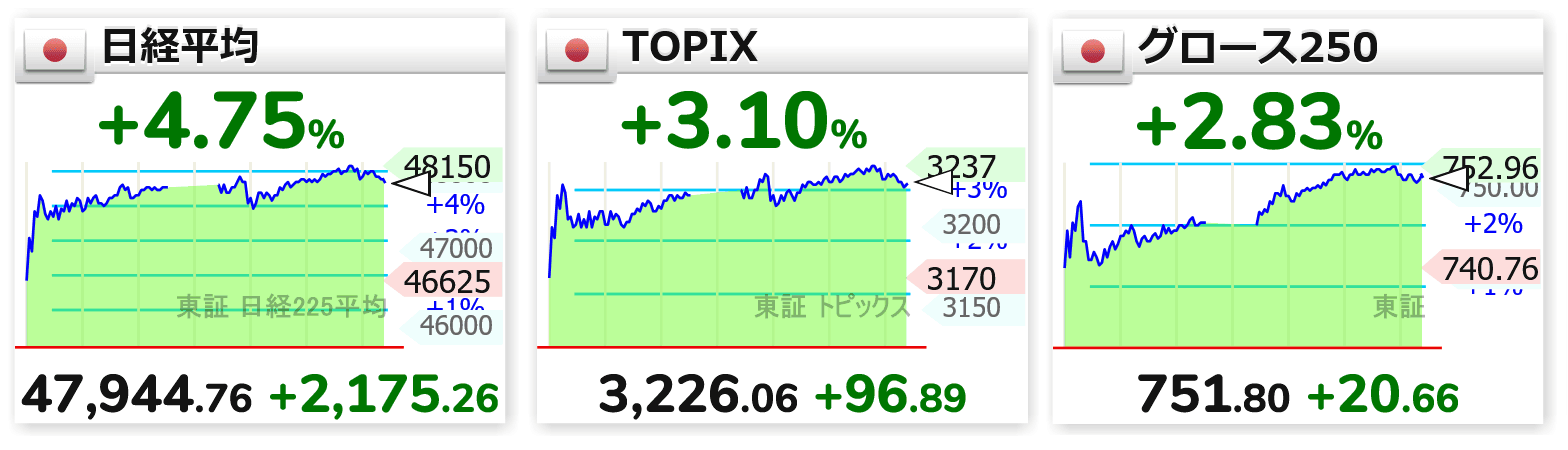 ※日経平均株価、一時4万8000円台にタッチして歴代4位の上げ幅を記録