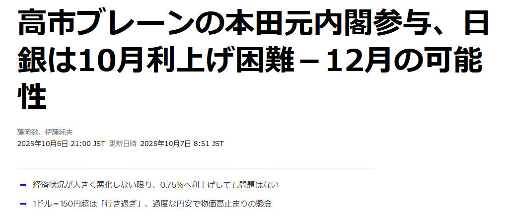 高市本田ライン→「150円を超えたら、やや行き過ぎだろう」https://t.co/xlpfTDodY6
