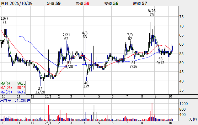 ※夜間取引市場でフライング急騰した後に急落する文教堂グループホールディングス