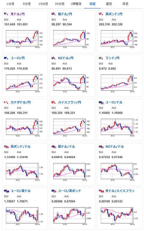 1: 以下名無しさんに代わりまして管理人がお伝えします 1848/01/24(?)00:00:00 ID:money_soku 2025年10月12日22時43分取得: 1001: 以下名無しさんに代わりまして管理人がお伝えします 1848/01/24(?)00:00:00 ID:money_soku 先週の記事:【相場・アンケートあり】高市氏総裁就任、米政府閉鎖及び利下げ圧で綱引きか 来週のドル円はどうなる?先週の予想:僕はいつも通り「円安、株高、金高、仮想通貨高」と予想しているお!円安(147.4→151.6)→正解株高(JP225 45769→48088)→正解金高(3908→4000)→正解過疎通貨高(BTC 12590→11394)→外れ 金曜日の大荒れ材料は土曜日になってから打ち消しの材料あり。 そのため月曜日は恐らく円安に動いてのスタートだお。 仮想通貨の予想が外れているのだけれど、僕は来週も円安、株高、金高、仮想通貨高の予想だお。 document.getElementById(‘kznott2frame’).onload = function() { try { const contentHeight = this.contentWindow.document.body.scrollHeight; this.height = contentHeight; } catch (e) { console.error(“error”); } }; 続きを読む Source: 稼げるまとめ速報 投稿ナビゲーション 「団塊の世代」←こいつらのチート人生 国民・玉木代表 「明日、重大発表を行う」
