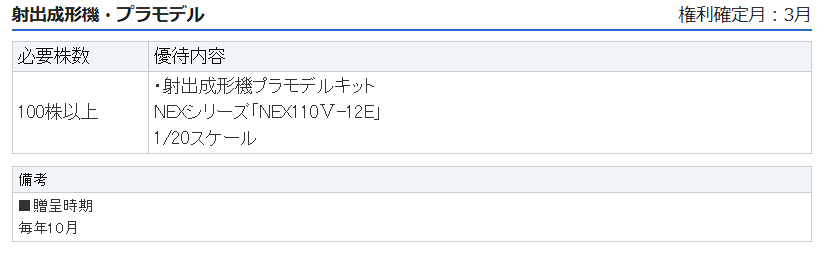 件の株主優待の射出成形機プラモ、クオリティ高そうで笑う。ここの株ちょっとほしくなってきたじゃねーか(思惑ホイホイ)