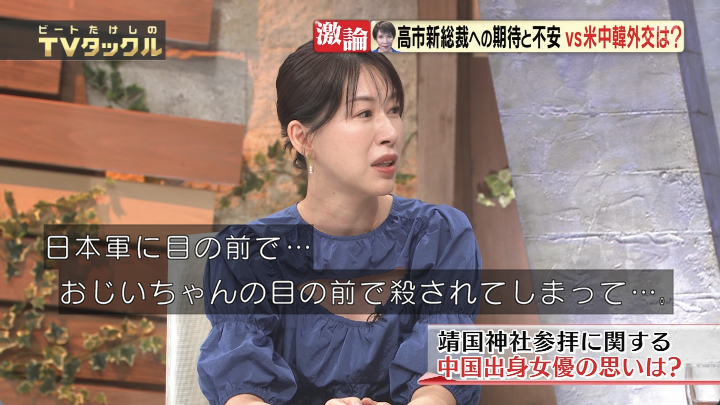 何この女ヤバい。中国出身の女優らしい。靖国参拝もして欲しくないと泣いてた#TVタックル pic.twitter.com/mMK48FG8og