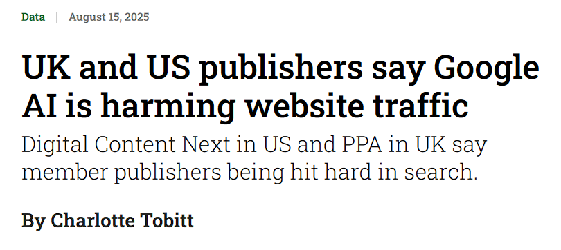 生成AI普及がどういう形で競争環境を変化させたかまでは書いてないけど、生成AIで回答見て終わる形が増えて記事とか諸々読まれなくなったってこと?