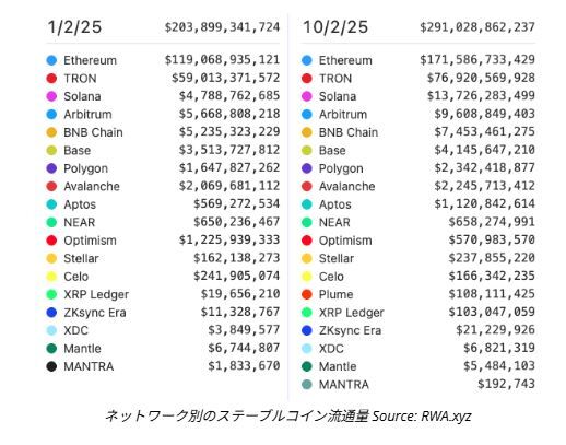 ネットワーク別ではイーサリアムが引き続き優勢で、ステーブルコイン流通供給は1710億ドルに達した。