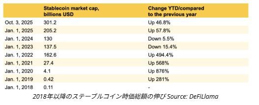 3000億ドルという水準を突破したことで、ステーブルコイン市場は新規発行ラッシュや競争激化が進む中、2024年を上回る成長ペースに入る可能性が高まっている。