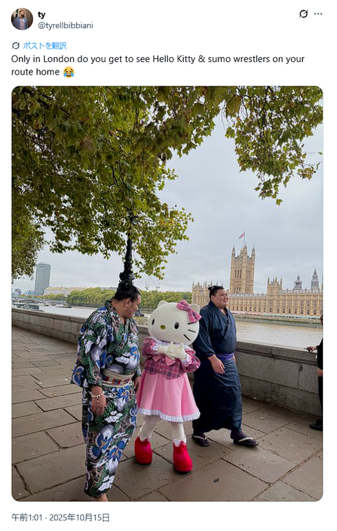 キティちゃんって隣に大の里がいても豊昇龍しか眼中にないよね — 桃蝶@また大関と呼ぶことを諦めない (@momochou_osumou) October 18, 2025 大相撲ロンドン公演に関する記者会見、力士が喋ってるのかなと思ったら協賛企業の社長だった。#wbs pic.twitter.com/ykAfcFwSO3 — りょうちん (@pullup0721) October 16, 2025 https://txbiz.tv-tokyo.co.jp/ 大相撲ロンドン公演。巨大マカロンはなかったけど巨大キッコーマン醤油(瓶ではない)と大きなキティちゃんぬいぐるみが豊昇龍へ。 — mspencer🍵🍵🍵 (@teatimepalace) October 19, 2025 お相撲さんと並べてもなおでっかいキティちゃんの人形すごいな — 砂凪 (@sanagi_iganas) October 20, 2025 辻社長の方が体躯デケェwサンリオ場所つくろうず pic.twitter.com/8V8QL6Rktd — ぷっちょ (@puchogen) October 20, 2025 力士の顔がなんか「僕より太くないです?」みたいな顔に見える — こういちReLU🍥 (@Kouichi75785996) October 20, 2025 ※豊昇龍 身長188cm 体重149kg 仕上げてきた — うしっクマ (@bullbear48) October 20, 2025 誰が相撲録るのかわからんキティか? — 朝倉かおる7/7🚼(3) (@AsakuraKaoru) October 20, 2025 和服着せたら映えたのにこの体格。(´・ω・`) — 僻地課長 (@bubu0404) October 20, 2025 この方がサンリオの株価をどれだけ跳ね上げたことか… — たいがあ (@tigergaoon) October 20, 2025 https://kabutan.jp/stock/chart?code=8136 サンリオ辻社長 ←31歳 36歳→ 業績、株価、体格、大きく伸ばす。 pic.twitter.com/FLNCSmrHJ6 — ただの銀行員 (@BATALEON007) September 8, 2025 体格だけは現状維持でええんちゃうか — こぎまる (@JriH1beiQ962948) September 9, 2025 太りすぎやろw 生活習慣を注意出来る人おらんのか。 — basa (@basassang) September 9, 2025 サンリオの辻社長、豊昇龍よりちゃんこいっぱい食べそう — 古着屋FRANK(ひとまず閉店) (@FRANK0AJIKO) October 20, 2025 あのでっかいキティちゃんは飛行機の荷物室に押し込まれて帰ってくるのだろうか — 桃蝶@また大関と呼ぶことを諦めない (@momochou_osumou) October 20, 2025 Source: 市況かぶ全力2階建 投稿ナビゲーション Amazon、皆様お馴染みの”あの”セールを開催すると予告してしまう😳【📦】 イオン・BYDが販売提携、EV流通に変革 独自割引で実質200万円切る