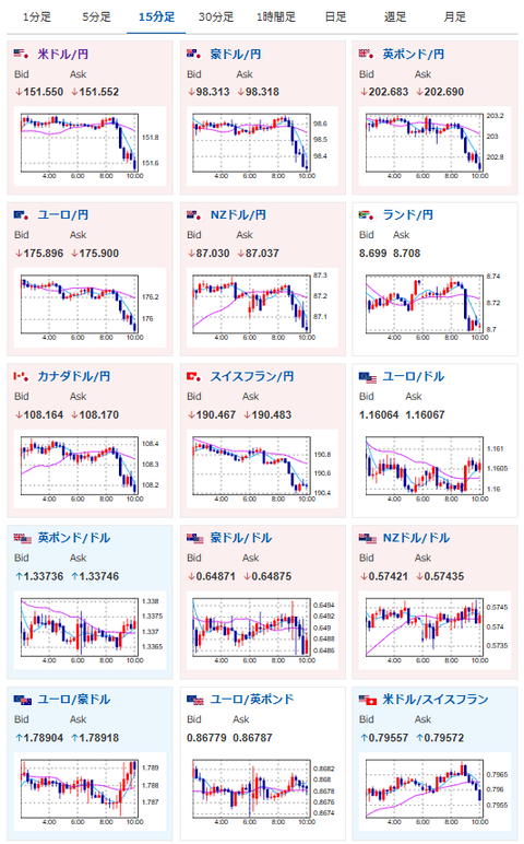 1: 以下名無しさんに代わりまして管理人がお伝えします 1848/01/24(?)00:00:00 ID:money_soku 2025年10月22日10時36分取得: やる夫今日のポイント:・一旦各商品の下げ止まりまで様子見・ご祝儀ムードの終了で次の材料待ち 今日の予想:・特に予想に変化なし円安、株高、金高、仮想通貨は様子見中・米中対立激化には注意 本日のスケジュール(特に重要なイベントは赤字で表示):前回発言は、直近であれば大きくスタンスが変更される可能性は低いため影響度低久しぶりの発言、スタンスの変化、中央銀行への影響力などがある場合、相場への影響大 15:00 英)9月英消費者物価指数(CPI、予想:前月比0.1%/前年比4.0%) 15:00 英)9月英CPIコア指数(予想:前年比3.7%) 15:00 英)9月英小売物価指数(RPI、予想:前月比▲0.2%/前年比4.7%) 17:00 南ア)9月南アフリカCPI(予想:前月比0.2%/前年比3.4%) 20:00 米)MBA住宅ローン申請指数 20:00 欧)デギンドス欧州中央銀行(ECB)副総裁、講演前回発言(10月時点):ECB、銀行資本バッファー削減提案へ 小規模銀行向けに規制簡素化 21:25 欧)ラガルドECB総裁、講演前回発言(10月時点):インフレリスクの幅は狭まったと認識 23:30 米)EIA週間在庫統計 23日02:00 米)米財務省、20年債入札 インド(ディワリ)、休場 1001: 以下名無しさんに代わりまして管理人がお伝えします 1848/01/24(?)00:00:00 ID:money_soku おはようございますお。 ご祝儀ムードが終了で為替以外はがっつり下げの展開に。 最終的にはロングに戻したいけれど、現在は下げ止まりになるタイミングを待っているお。 金価格も大幅に下げたので、一旦ポジションは解消。 材料出尽くしのため、次の材料が出るタイミングを待っているお。 document.getElementById(‘kznott2frame’).onload = function() { try { const contentHeight = this.contentWindow.document.body.scrollHeight; this.height = contentHeight; } catch (e) { console.error(“error”); } }; 続きを読む Source: 稼げるまとめ速報 投稿ナビゲーション セキュリティ業界最高 金価格、史上最高値を更新した直後に日本屈指の逆神が興味を持ち過去最大の下げ幅を記録