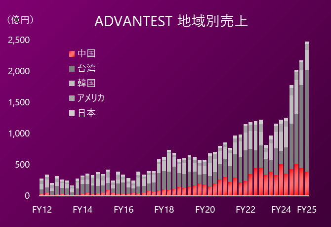 アドバンテストの地域別売り上げ。台湾がぶっ壊れてて草w