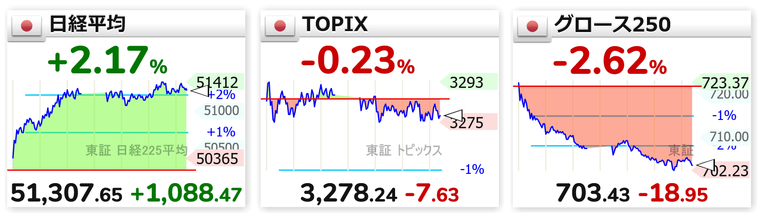 日経+2%以上、TOPIXマイナスは2000年4月18日以来っぽいな