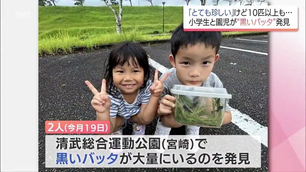 10月、宮崎市の小学生と園児が公園でとある昆虫を捕まえたのですが、全身がなんと「真っ黒」でした。