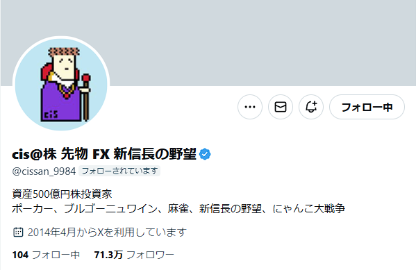 cisさん総資産500億円になっててウケる