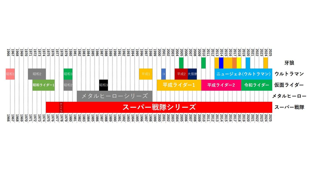 特撮知らない層には『スーパー戦隊終了』の重みがいまいち伝わっていなさそうなので、図示してみました。