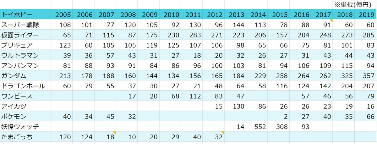 うーん、たしかにこれ見ると仮面ライダーは安定してるけど戦隊は売上よろしくないな pic.twitter.com/gJh3oe5ibv