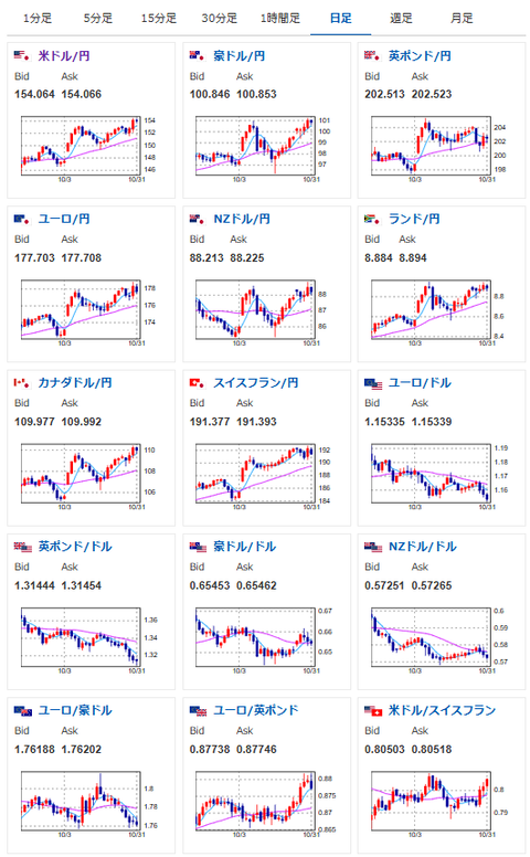 1: 以下名無しさんに代わりまして管理人がお伝えします 1848/01/24(?)00:00:00 ID:money_soku 2025年11月02日19時52分取得: 1001: 以下名無しさんに代わりまして管理人がお伝えします 1848/01/24(?)00:00:00 ID:money_soku 基本的に為替はやや円安気味で推移。 株価も安定した上昇基調となっているお。 最近地政学リスクが高まる報道が出てきているものの、中国が金販売に対する税制優遇措置を撤廃するとの報道あり。 週明けの動きに注目だお。 document.getElementById(‘kznott2frame’).onload = function() { try { const contentHeight = this.contentWindow.document.body.scrollHeight; this.height = contentHeight; } catch (e) { console.error(“error”); } }; 続きを読む Source: 稼げるまとめ速報 投稿ナビゲーション 猟師「クマを殺す為に猟友会に入ったわけじゃないし、俺らは本業のある民間人」 【悲報】ワイ子会社の年上管理職と揉めて大事になる
