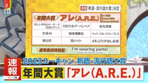 流行語大賞が10年前くらいから「やくみつるが今年ハマったもの発表会」になってる — せはむすてき (@sehamusuteki) December 2, 2024 https://www.youtube.com/ 流行語大賞なんて民間企業が適当に決めてるだけなんだから別にどうでもいいだろとは思うが流石に誰も使ってない言葉が選ばれるとびっくりするわな — 天秤明日人 (@hubuki0315) December 4, 2024 去年のふてほどが決定的に世間と乖離してたしそりゃね — 爆走まぐろ (@bakusoumaguro) November 7, 2025 流行語の『ふてほど』が『不適切報道』に変換された件。死に体で出した弱攻撃がゲージ消費の必殺技カウンターで返されたみたいになってる。 — かねやん (@kaneyan2000) December 2, 2024 2025年の新語・流行語大賞のノミネート語30らしい pic.twitter.com/VITjanOin9 — ハルハル@アニラブ女子 (@haruharuAniaka2) November 5, 2025 オールドメディアが大賞になったらこれほどよく効いた皮肉はないよな(消されるぞ — 斧 (@brokenax6301000) November 5, 2025 流行語大賞、ユーキャンが抜けた途端にちゃんと流行してた言葉ばかりになって、諸悪の根源が発覚した展開。 — くまねこ (@kuma_neko_) November 6, 2025 あとはやくみつるを追放すれば完璧だ — オルタフォース (@pvSrvrYvHsrG3a7) November 6, 2025 逆にまだ選考委員にやくみつるが残っているのに、MLB含めて野球語が一切入っていないのな(,,゚Д゚) — MATUKEN@隠居/Pf3Mo3PfMs (@MATUKEN) November 7, 2025 やくみつるは野球ファンとして知られてるが本性はこんなもんだぞ? pic.twitter.com/Tobpr7rIDc — Vやねんちゃん@日本一 (@GoblinSmithy) December 3, 2024 流行語大賞、ユーキャンのイメージだったけど2025年からT&D保険グループに特別協賛変わったんだ…https://t.co/fodLl4pUsQ — believe × (@airbe) November 5, 2025 太陽生命と大同生命でT&Dか — c3* 🐇 (@cstorz) November 5, 2025 T&Dは太陽生命&大同生命の略なのにTry&Discoverみたいな意味を後からつけるのやめてほしい。世間の人々は社内の人間ほど合併元会社をわかってない。 — 宮本紅葉@With AMCG (@TomolilyArcadia) June 28, 2025 https://www.youtube.com/ 元々SBIはソフトバンクインベストメントでソフトバンクの子会社だった。しかし2006年に孫さんと北尾さんが袂を分かちソフトバンクはSBIホールディングスの全株式を売却。今では無関係になっている。現在はSBIは「Strategic Business Innovator(戦略的ビジネスの革新者)」の頭文字とされている。 — みつ投資公認会計士(株式、不動産投資)群 (@icom_mitu) November 4, 2025 https://kabutan.jp/stock/chart?code=8795 Source: 市況かぶ全力2階建 投稿ナビゲーション 日本熊森協会「子熊殺すな」 【悲報】おこめ券、また非課税世帯限定か?wwwwwwwwww