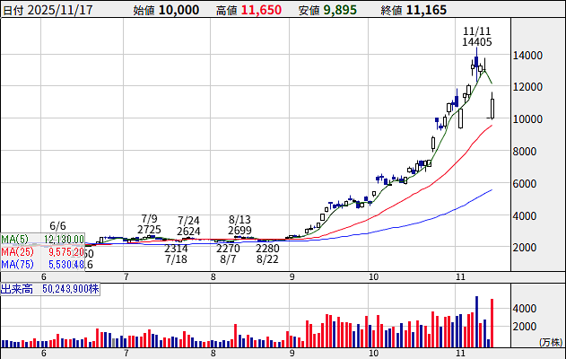 完全仕手株になってて呆然としてたけど— 長崎特急白いかもめ885 (@kamome_885) November 13, 2025