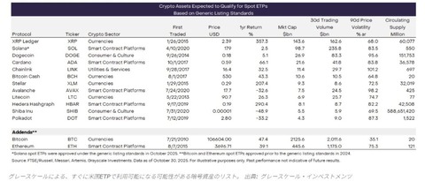 グレースケールがアルトコインのブレイクアウトを予測、11の暗号資産が新たなSEC資格を満たす準備 暗号資産マネージャーのグレースケール・インベストメンツは、米国の規制の明確化によってアルトコインの取引所上場商品(ETP)の急増を促し、デジタル資産市場の強気な拡大を予測しました。同社の最新分析は、規制された暗号エクスポージャーへのアクセスの拡大が、ビットコインとイーサリアムを超えた機関投資の受け入れと多様化を加速させる可能性があることを示唆しています。 グレースケールのリサーチチームは10月31日にMarket Byte: Here Come the Altcoinsを発表し、次のように述べています。 今後数週間で、米国の規制当局からの新しいガイダンスにより、ビットコインよりも市場価値が低い‘アルトコイン’へのエクスポージャーを提供する取引所上場商品の数が大幅に増加すると投資家は予想できます。 この見通しは、米国証券取引委員会(SEC)が9月17日に暗号資産ETPのジェネリックリスティング基準を承認し、取引所が個別のSECレビューなしにトークンを上場できるようになったことに従います。ソラナのSOLトークンは新たな枠組みの下ですでに取引されており、簡素化されたプロセスの早期実施を示し、XRP、カルダノ、チェーンリンクなどの大手アルトコインの前例を設定しました。 グレースケールはさらに加えました: ソラナに加えて、グレースケールは11の異なる暗号資産がジェネリックリスティング基準を基にETPに適格となると予想しています… 時が経つにつれ、新しい基準を満たす暗号資産の数はさらに増える可能性が高いです。 11の暗号資産はXRP、ドージコイン(DOGE)、カルダノ(ADA)、チェーンリンク(LINK)、ビットコインキャッシュ(BCH)、ステラ(XLM)、アバランチ(AVAX)、ライトコイン(LTC)、ヘデラ(HBAR)、柴犬(SHIB)、及びポルカドット(DOT)です。今週、LTCとHBARのETFはすでに上場されました、これは投資家の信頼を強化し、追加の上場が続く可能性を示唆しています。 FTSE/Russellとのインデックスプロバイダーで開発された暗号セクターフレームワークによれば、ビットコインとイーサリアムと並んで、適格資産は総暗号セクターの市場資本のほぼ90%を占める可能性があります。市場戦略家は、この動きを、規制されたETPが流動性を強化し、アクセスを拡大し、アルトコインセクター全体での長期的な受け入れを加速させることを示唆する強気な信号として解釈しています。 FAQ ⏰ 新しい米国規制がアルトコイン市場に与える影響は何ですか? 新しい米国の規制の明確さは、アルトコインETPの急増を引き起こし、流動性と機関参加を促進すると予想されています。 新しい枠組みのもとでETPに適格と予想される暗号資産の数は? グレースケールは、ビットコインとイーサリアムに加えて、少なくとも11のアルトコインが規制されたETPに初期適格となると予測しています。 この進展後、機関採用が増加すると予想されるのはなぜですか? 規制されたETPは、より安全で透明なエクスポージャーを提供し、多くの機関投資家を多様な暗号資産へ引き込む可能性があります。 これらの資産は暗号市場のどの割合を占める可能性がありますか? グレースケールの分析は、これらの適格資産が総暗号市場資本のほぼ90%を占める可能性があると示唆しています。 参考資料:https://news.bitcoin.com/ja/grayscale-bakuhatsuteki-na-altcoin-no-seicho-wo-yosoku-11-no-angyo-shisan-ga-atarashii-sec-kijun-wo-mitasu-junbi-ga-togoru/ contents ●テレグラム始めました! https://t.me/joinchat/F-7ftRCH5u_8J7k2JUM1rw ●無料でLINE@で有益情報を随時流しています。 https://lin.ee/1rhkgzo ●過去の記事 http://ripple.2chblog.jp/ ■トレードするならバイナンス! https://www.binance.com/ ■yobit net https://yobit.net/en/ ●テレグラム始めました! https://t.me/joinchat/F-7ftRCH5u_8J7k2JUM1rw ●無料でLINE@で有益情報を随時流しています。 https://lin.ee/1rhkgzo ●過去の記事http://ripple.2chblog.jp/ ■トレードするならバイナンス!https://www.binance.com/■yobit nethttps://yobit.net/en/ Source: Rippleリップル)仮想通貨情報局 投稿ナビゲーション 【討論】ビットコインはもう終わりなのか、買い時なのか Rippleが支援するEvernorthが●●億XRPを突破、機関投資家の暗号通貨力を再定義