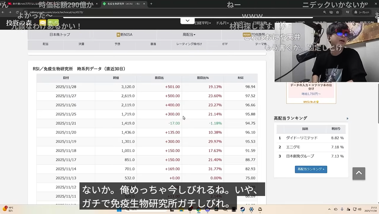 免疫生物と大黒屋、おにやが話題にしてから暴落してるのガチの死神でおもろい