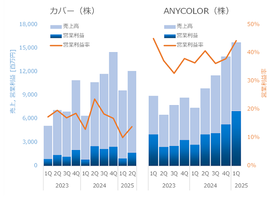 ANYCOLORの方が利益率も高く順調に成長中。Vtuber事情は詳しくないですが、こんなに差がつくもんなんですね… pic.twitter.com/VtVZiGWnVt— 決算グラフ化芸人|統計を学んでいたはずの化学系技術者 (@ChemStat66667) December 3, 2025