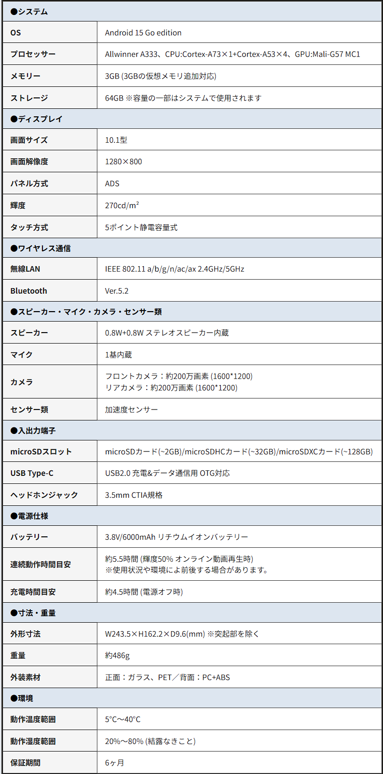 スリコのタブレット、Android15にGo EditionがあることにもびっくりするしストレージがeMMC 32GBというのもびっくりする。