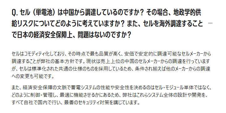 パワーエックス「中国のセルメーカーからの調達を行っています」cis「日本製じゃないのか」