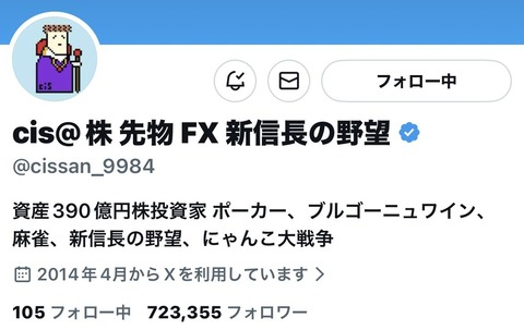 500万円が400万になるトレードはまぁ、分からんでもないが、500億が400億って未知数すぎる — Nori (@Topixboy) November 17, 2025 ※一人のチカラで日経平均を動かせる男、キオクシアでハンドル操作を誤り500億円儲けた男から400億円儲けた男に転落する爆損芸(2025/11/17) cis氏、資産390億円から380億円に減少 pic.twitter.com/7jLST5h8Wh — SRS(LC4300万) (@srs20170526) December 4, 2025 ↓ https://x.com/cissan_9984 cisさんのこと歴代最強煽り屋って言うのやめろ — 株ゴリラ (@gorillataxjp) November 7, 2025 パワーエックスS高…!?何がそんなに評価されとんの、これ…(´・ω・`) — ざら速(ザラ場速報) @ときどき仮想通貨 (@ZARASOKU) December 19, 2025 https://kabutan.jp/stock/chart?code=485A ※公開価格1220円→初値1130円→終値1430円(時価総額519億円) 公募割れで売っちゃった人「人のパワーエックスを笑うな」 — 確認用 (@news9111) December 19, 2025 https://www.youtube.com/ どいつもこいつも影響されすぎだろw — 炭鉱のマネツイ (@Money_tweet1118) December 19, 2025 しっさん何株ぐらい持ってるんだろ。凄すぎ。 — じろ🍀 (@26ooo) December 19, 2025 蓄電池とか差別化は相当難しいと思うけどな… — 新垢メタスラ(ベンツマン@株式板) (@Benzman_TAKE2) December 19, 2025 パワーエックス無限に売りでてるw — ナニワのギン💪(*´ω`)ε`*) 🇯🇵株投資 無職📈エロ✨大阪港区弁天町🏙 (@Kabumashin) December 19, 2025 それを世間では風説と言います — アルファるふぁ (@aru_pha) December 19, 2025 cis「日本製の性能が良くて安全な蓄電池」https://power-x.jp/パワーエックス「中国のセルメーカーからの調達を行っています」 cis「日本製じゃないのか」 なにしとんねんw — TSZ@天上不知 (@stockTSZ) December 19, 2025 「とある」から、 銘柄名はっきりかいちゃってる — RING 🇯🇵 #Investor #Trader (@xRINGx) December 19, 2025 売りたくなってきたなんてわざわざ言う必要ないよな…w — 殺し屋 (@korotyan9314) December 19, 2025 売りたくなってきたというかもう売ってるやろww — おいしさ (@oishisa_kabu) December 19, 2025 cisさんのポストって株価操縦だよね — 匿名客垢 (@mekabu1231) December 19, 2025 cisこれで捌いてたら顎芝居ってレベルじゃないぞ — 新垢メタスラ(ベンツマン@株式板) (@Benzman_TAKE2) December 19, 2025 下手するとS高で売ってる可能性あるよなw — 炭鉱のマネツイ (@Money_tweet1118) December 19, 2025 もう売り抜けてそうw — 朝倉かおる7/7🚼(3) (@AsakuraKaoru) December 19, 2025 cisさんの長期投資は数時間程度だから — SRS(LC4300万) (@srs20170526) December 19, 2025 Source: 市況かぶ全力2階建 投稿ナビゲーション 独身税にキレてるヤツなんなん?1年でたった昼メシ代×4だぞ? 【悲報】米屋、1300トンも新米の在庫を抱え込んでしまう