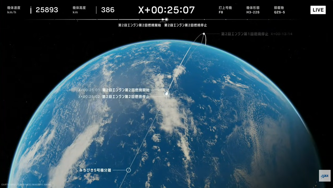 H3ロケット8号機による準天頂衛星システム「みちびき5号機」打ち上げは、第二段エンジンが予定より早期に燃焼停止したことが確認され、現在状況を確認中。#JAXA #H3ロケット pic.twitter.com/4DxWG66aML