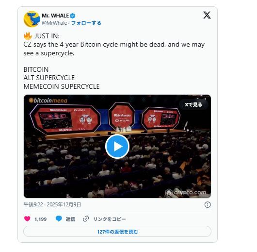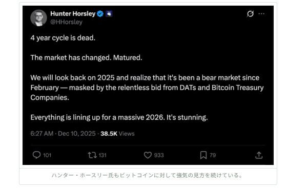 Xの投稿で12月10日水曜日、ホースリー氏は「4年サイクルは終わった」とし、「市場は変わった」と明言した。