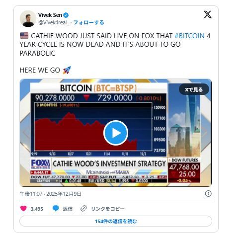 「2025年を振り返ると、2月以来の弱気相場だったことに気づくだろう。DATとビットコイン財務会社の容赦ない入札によってそれが覆い隠されていた」と彼は記した。