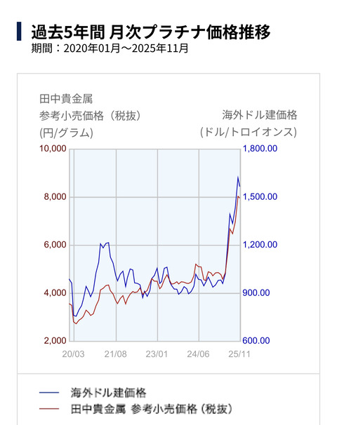 参照元:https://gold.tanaka.co.jp/commodity/souba/m-platinum.php1: コイン速報がお伝えします 2025/12/27(土) 06:33:40.72 ID:boZrqK6L0 BE:828293379-PLT(12345) 国内プラチナ先物でサーキットブレーカー発動 先高期待で買い膨らむ https://www.nikkei.com/article/DGXZQOUB268CD0W5A221C2000000/ 続きを読む Source: コイン速報 | 仮想通貨・暗号通貨・暗号資産ニュース 投稿ナビゲーション スタンダードチャータード、マルチイヤーのビットコイン予測を見直し、●●万ドルの見通しを延長 【速報】ビットコイン90,000ドル突破!年末上げきてんねwwwwwwwwww