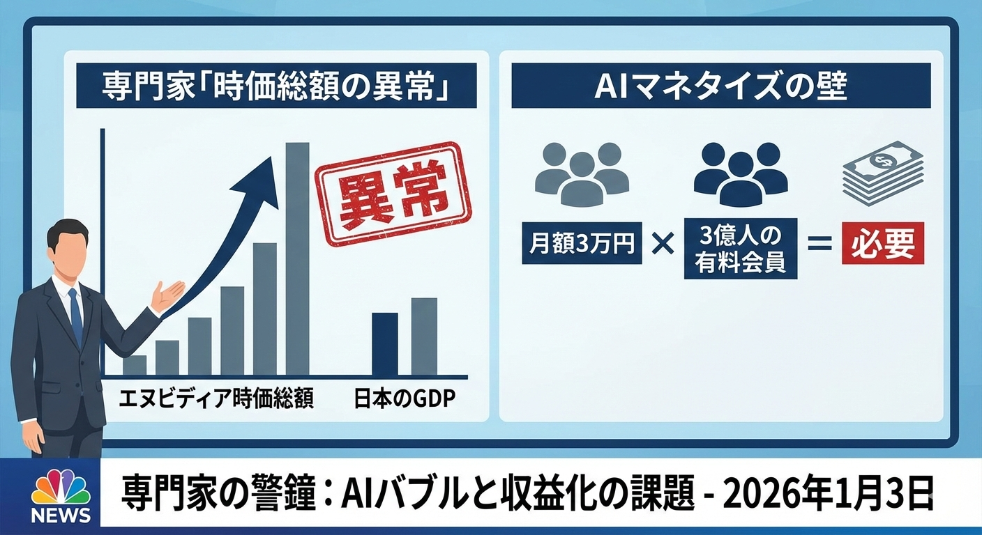 1: 2026/01/02(金) 10:43:43.62 ID:dYyqNi/M9 「エヌビディア時価総額が日本のGDPよりも大きい異常」エミン・ユルマズ氏が警告する“AIバブル崩壊”の足音 昨今の生成AI株の熱狂は、い […] Source: FX2ちゃんねる|投資系2chまとめ 投稿ナビゲーション お年玉を捧げろ!令和8年Amazon「スマイルSALE 初売り」本日より開催!!!【📦】 屈辱の「1ドル=250円」時代がやってくる…食料もガソリンも買えなくなる「弱い通貨」の真っ暗な未来