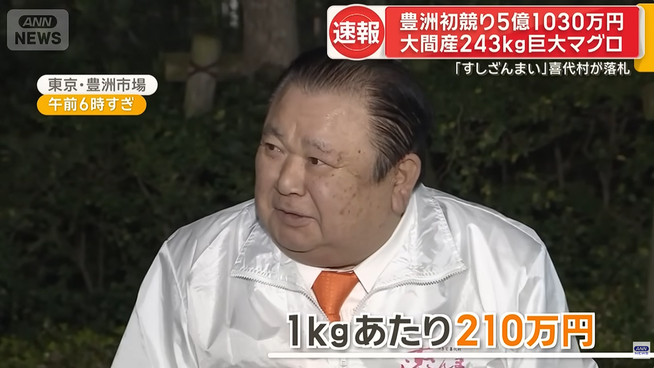 一番マグロの初競り、落札価格1匹で5億1030万円。
