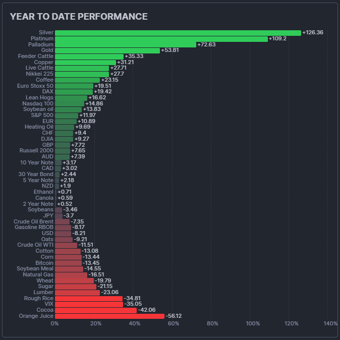2025年年間投資商品パフォーマンス決定版。貴金属4品が圧倒的上昇率で1位から4位独占です。おそらく史上初めての出来事でしょう。凄い年でしたね。 pic.twitter.com/nCOHXhz7Kc