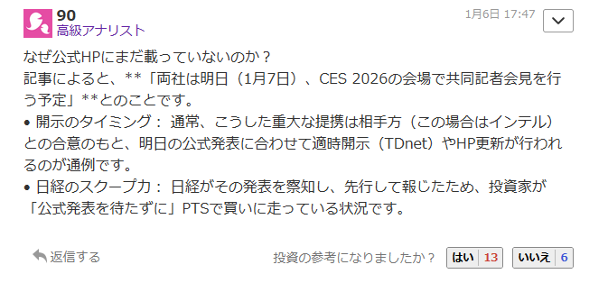 いっぱい書いてるけどソースは全く見当たらない pic.twitter.com/ftGMDhiuj8— 急騰🐣 (@kgbukabu) January 6, 2026