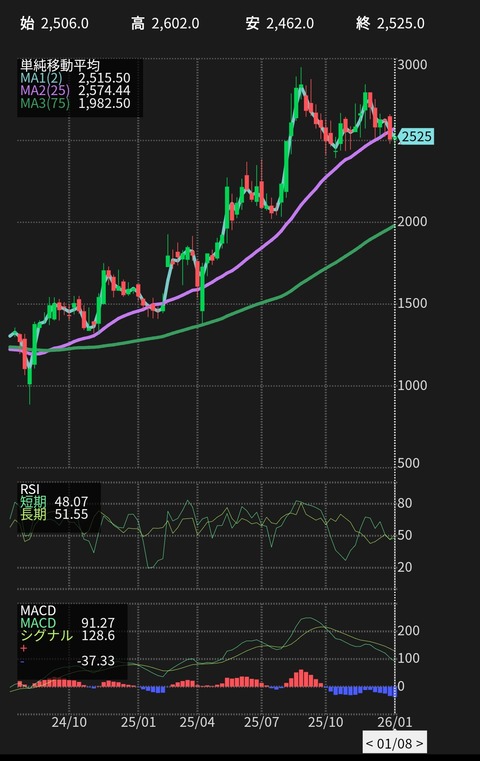 1: 2026/01/08(木) 11:41:44.598 このチャートを見て売った方がいいか 保持してた方がいいか教えてくれ! 続きを読む Source: 投資ちゃんねる – 株・FX・仮想通貨・投資2chまとめ 投稿ナビゲーション 中国のレアアース輸出停止で、経済損失額2兆6000億円。レアメタルまで拡大なら18兆円 まさかの圧勝予測…小川晶前市長は余裕のスマイル「ラブホ辞職でもなぜか市民に愛されている」ワケ
